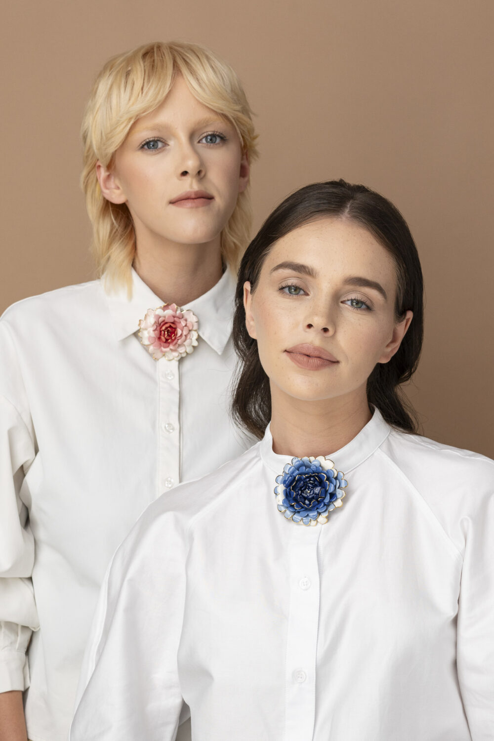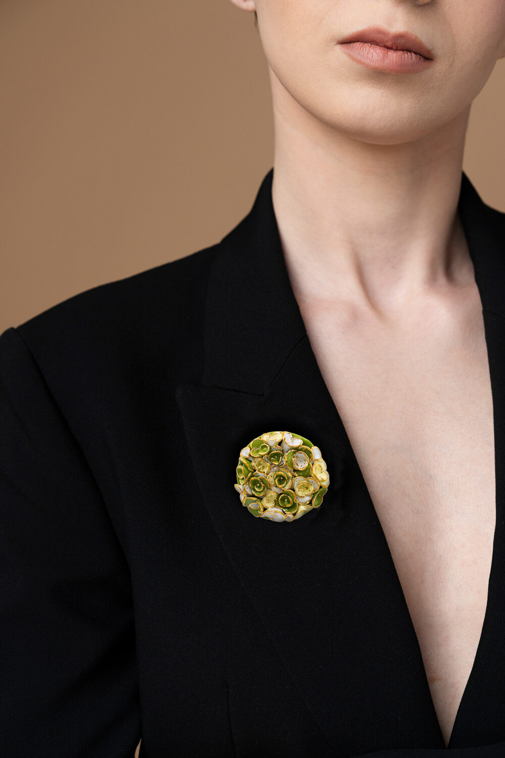 Florale Porzellanbrosche, von Hand bemalt, ein Unikat aus unserem Atelier. Sorgfältig geformt und mit 24-karätigem Gold veredelt, fängt diese elegante Brosche die Zartheit der Natur in einem zeitlosen Accessoire ein – perfekt für feminine und stilvolle Outfits.