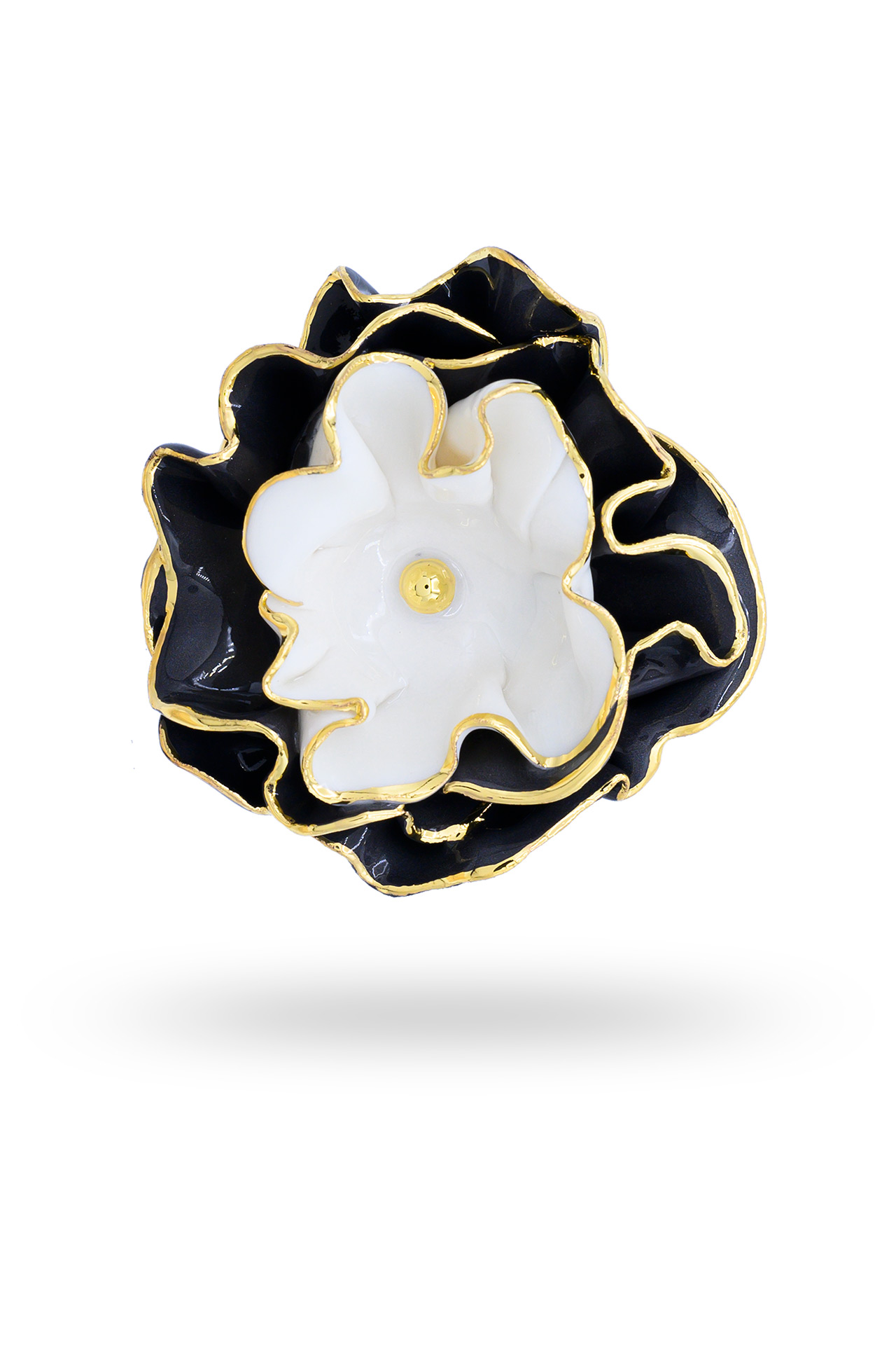 Florale Porzellanbrosche, von Hand bemalt, ein Unikat aus unserem Atelier. Sorgfältig geformt und mit 24-karätigem Gold veredelt, fängt diese elegante Brosche die Zartheit der Natur in einem zeitlosen Accessoire ein – perfekt für feminine und stilvolle Outfits.