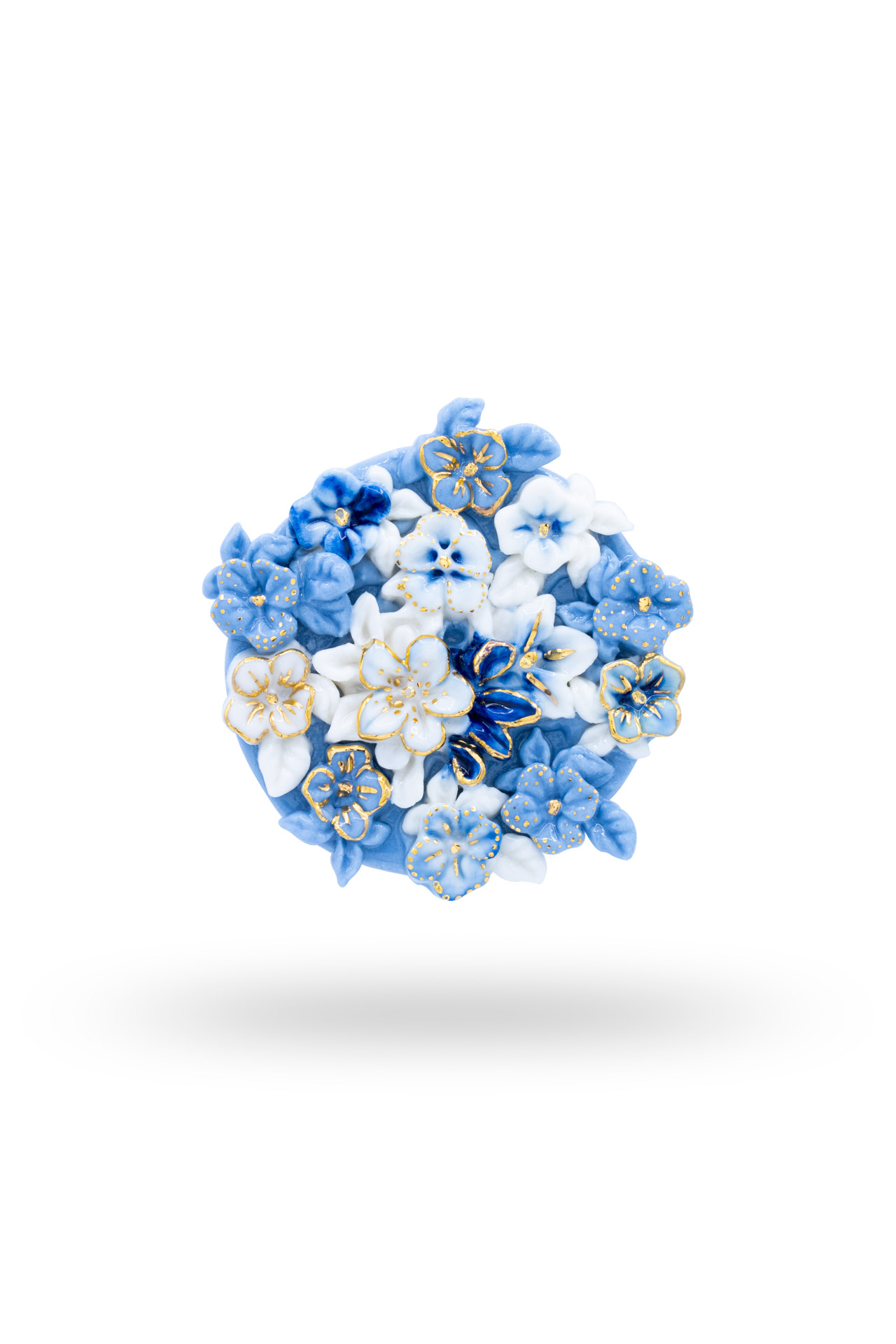 Florale Porzellanbrosche, von Hand bemalt, ein Unikat aus unserem Atelier. Sorgfältig geformt und mit 24-karätigem Gold veredelt, fängt diese elegante Brosche die Zartheit der Natur in einem zeitlosen Accessoire ein – perfekt für feminine und stilvolle Outfits.