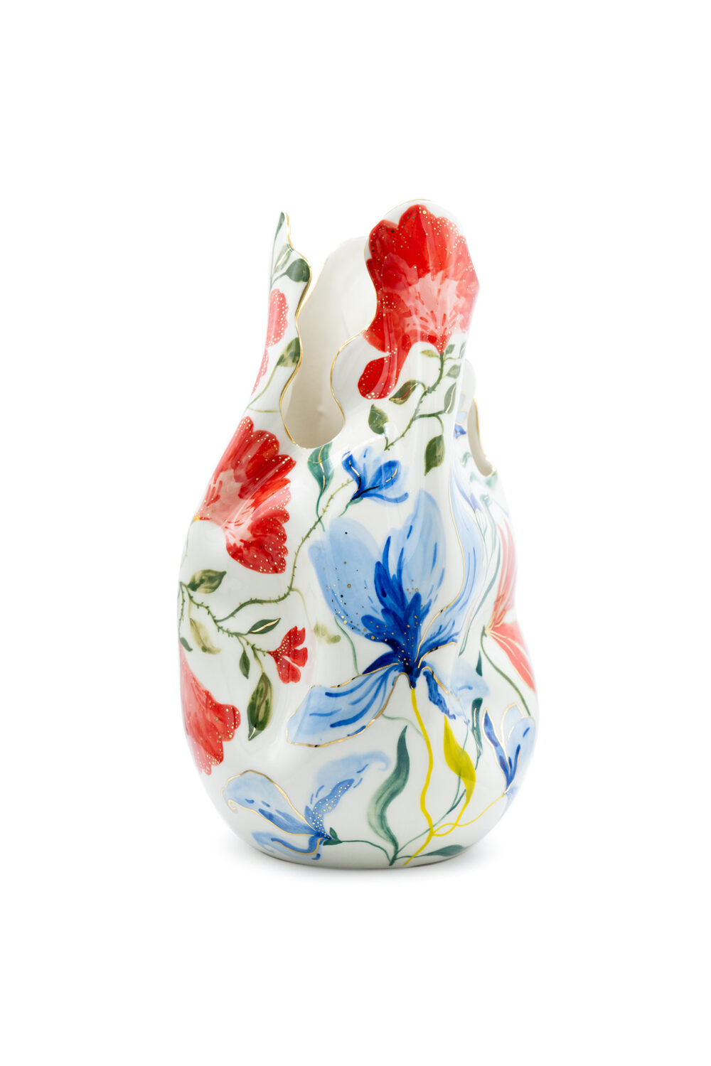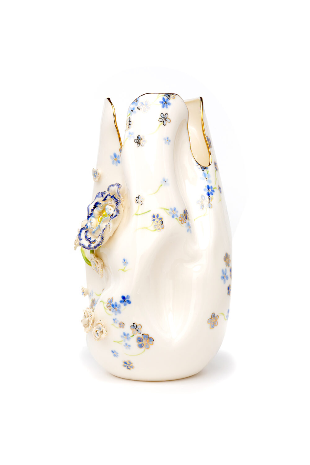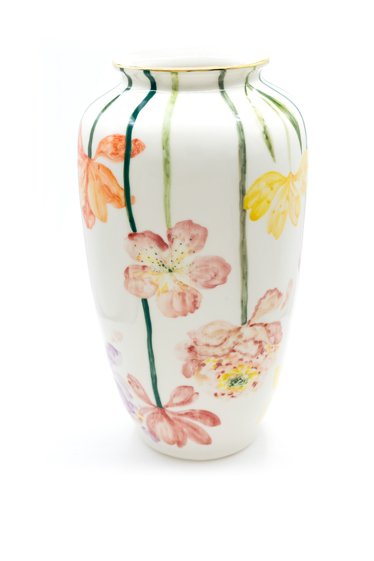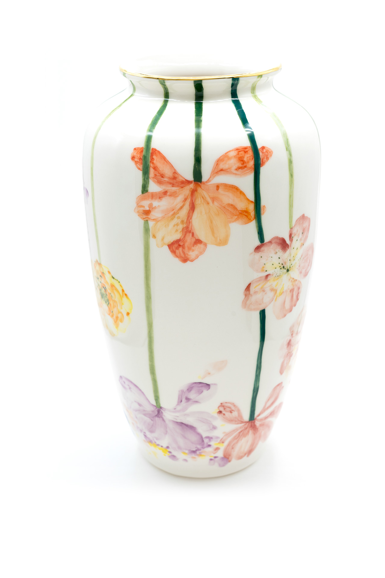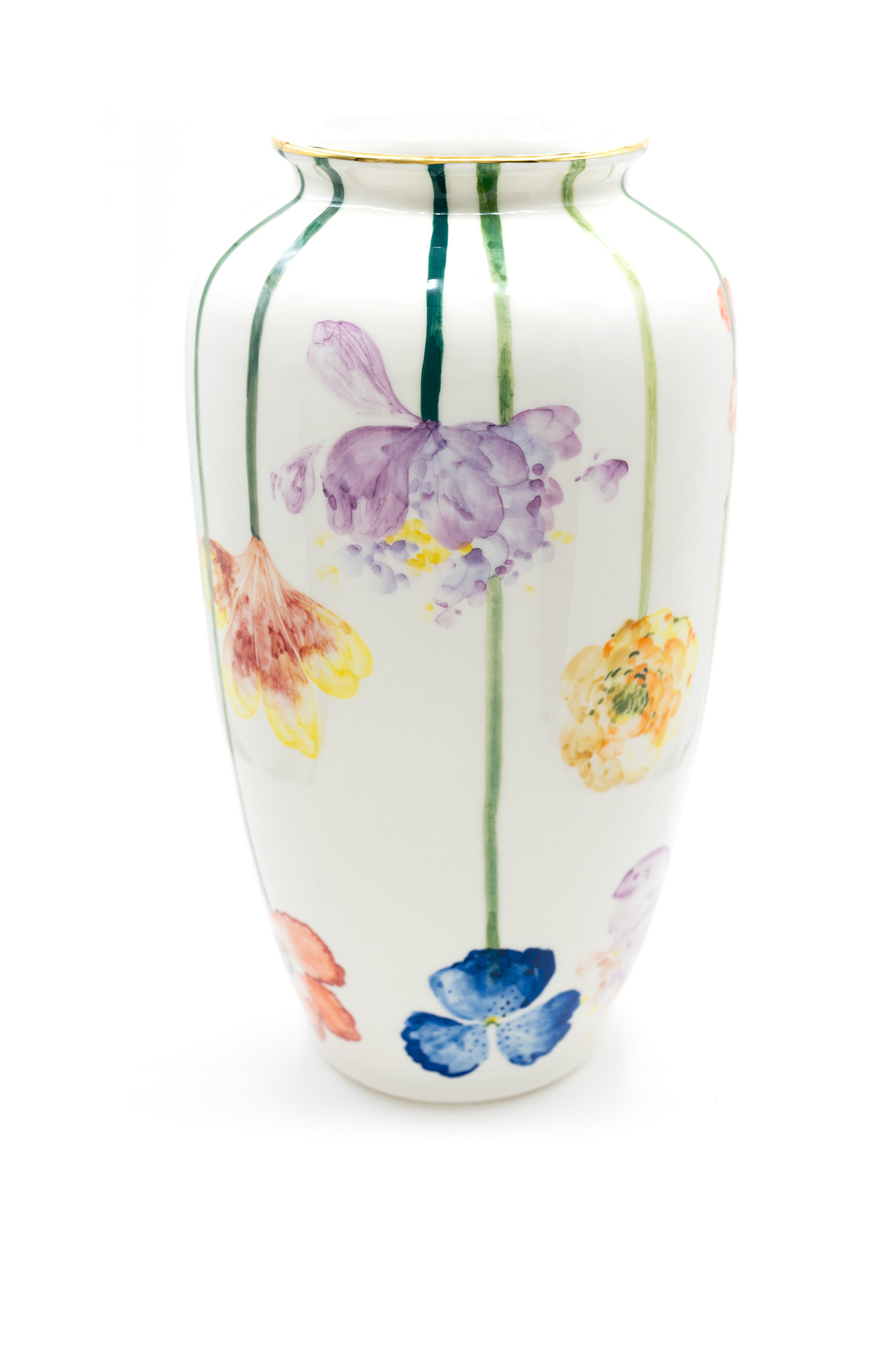 Jede Vase ist ein einzigartiges Stück aus Porzellan, das sorgfältig geschnitzt und mit goldenen Details bemalt ist. Die Vasen werden in limitierter Auflage hergestellt und jede ist ein Unikat. Es gehört zur Philosophie der Marke, dass die Stücke von einem Künstler geschaffen, originell, so vielfältig wie möglich und sehr sorgfältig gearbeitet sein sollen und so zu Kunstwerken im wahrsten Sinne des Wortes werden. Größe: 31 x 17 cm