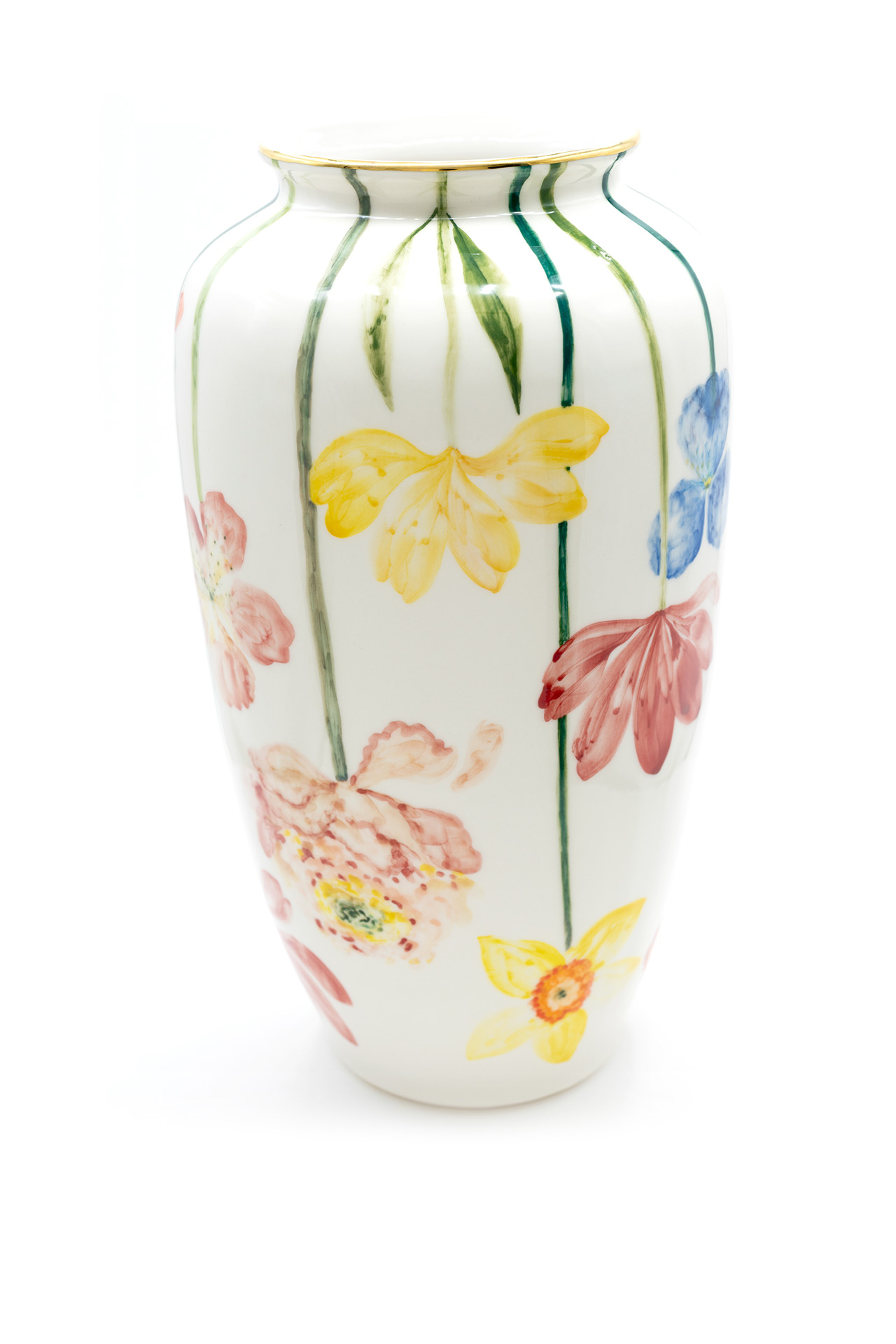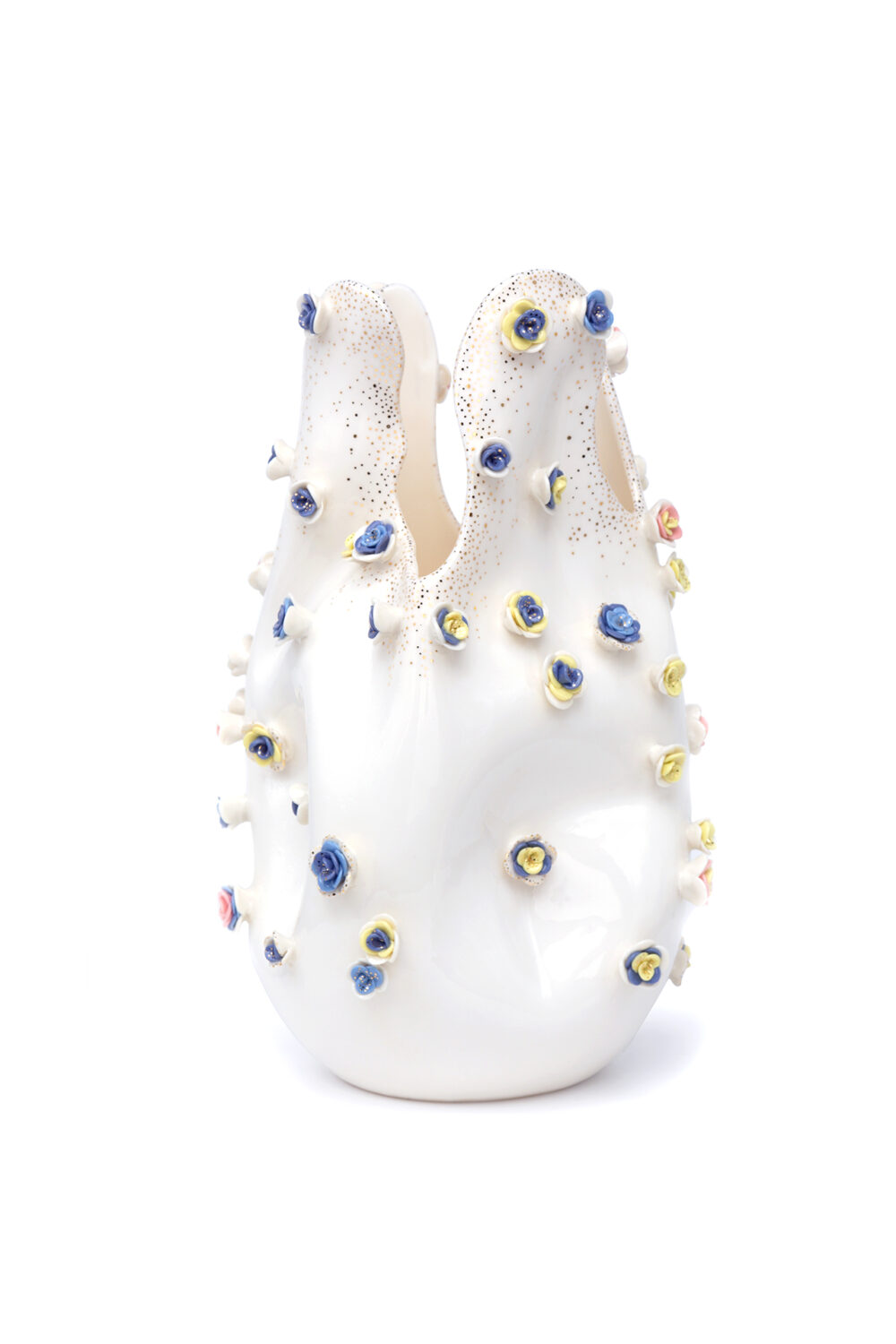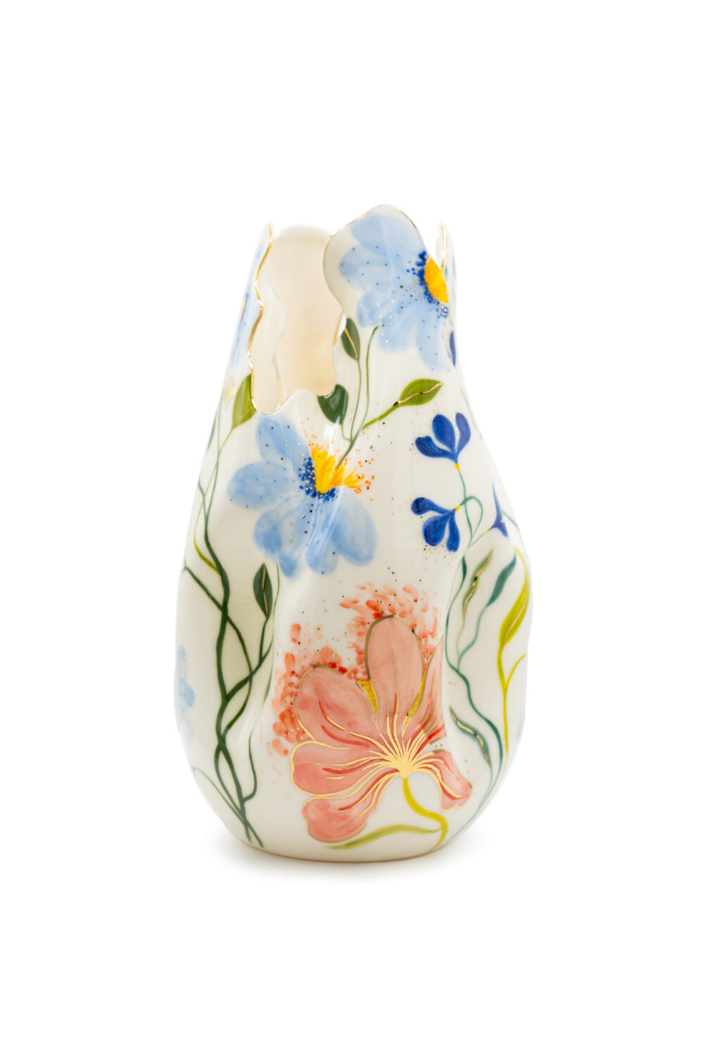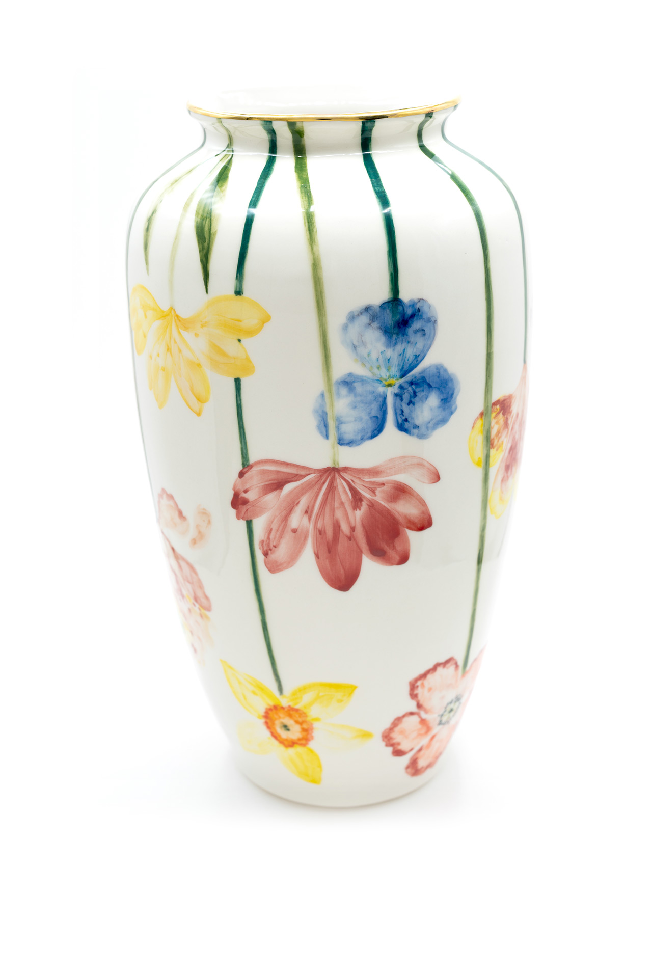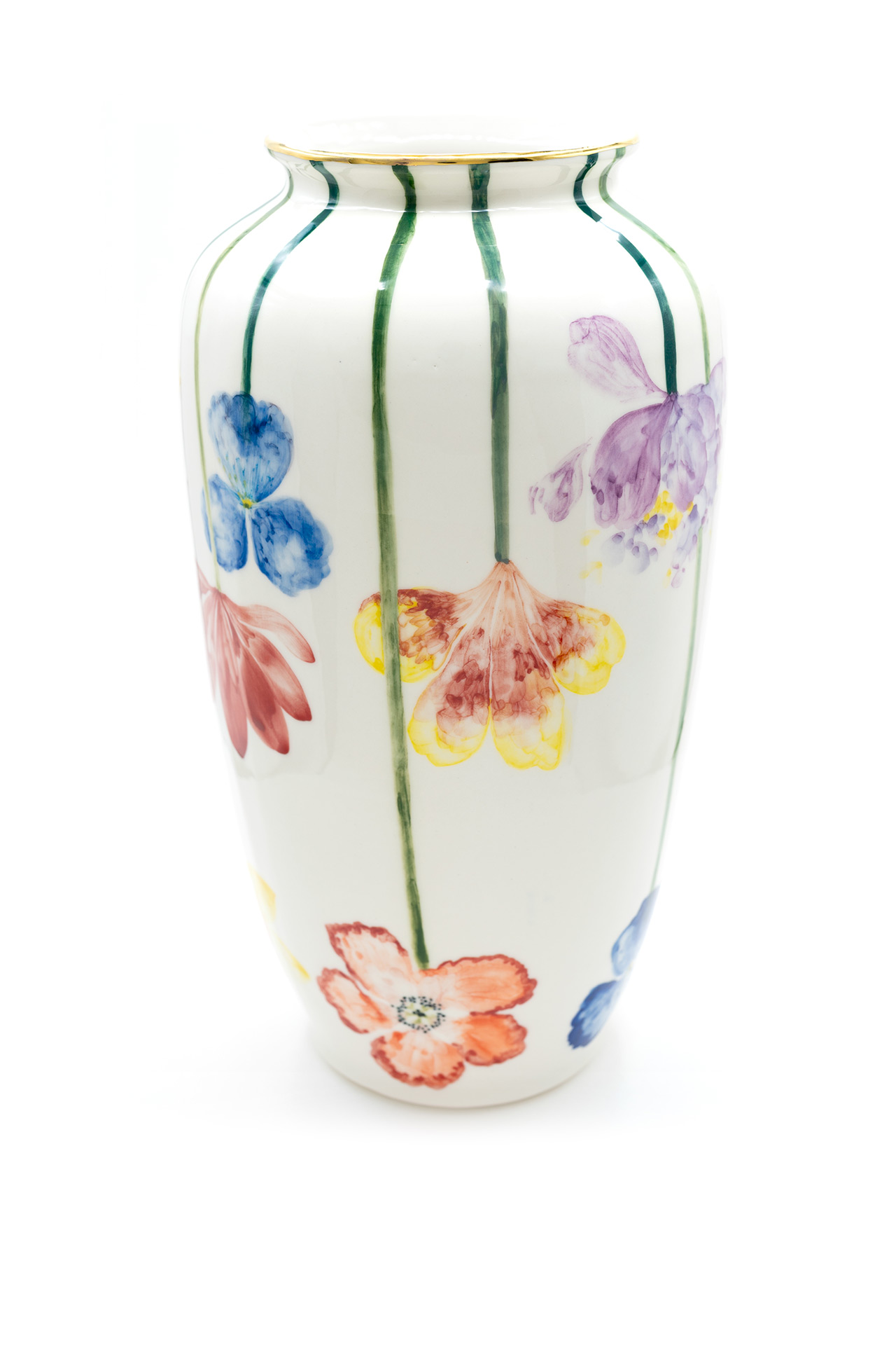 Jede Vase ist ein einzigartiges Stück aus Porzellan, das sorgfältig geschnitzt und mit goldenen Details bemalt ist. Die Vasen werden in limitierter Auflage hergestellt und jede ist ein Unikat. Es gehört zur Philosophie der Marke, dass die Stücke von einem Künstler geschaffen, originell, so vielfältig wie möglich und sehr sorgfältig gearbeitet sein sollen und so zu Kunstwerken im wahrsten Sinne des Wortes werden. Größe: 31 x 17 cm